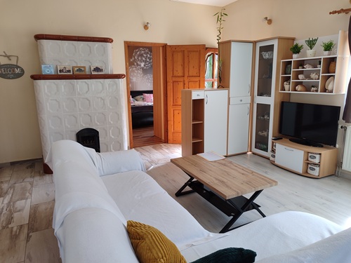 - A nappaliban két személynek fekvőhelyet biztosító kihúzható kanapé található